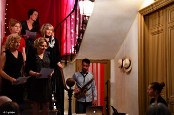Anicia Kohler (piano), Matthias Kohler (alto sax) und ein Chor mit Sänger*innen aus dem Dorf Sainte Valière, Projekt im Rahmen einer Artist Residency